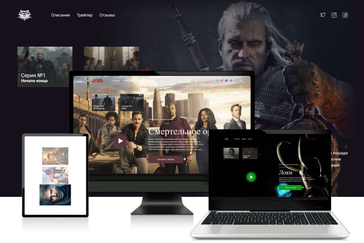 Задача была ясна: придумать подобие небольшой библиотеки (фильмотеки) с сериалами. Страница сериала должна содержать краткую информацию о сюжете, трейлер и возможность выбора сезона и серии.