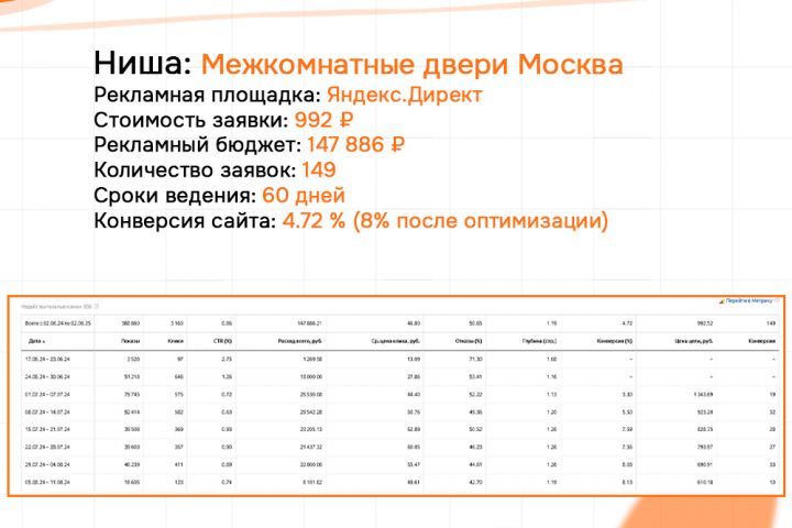 КЕЙС: Двери МСК - Б2С - Яндекс 149 заявок по 992 руб