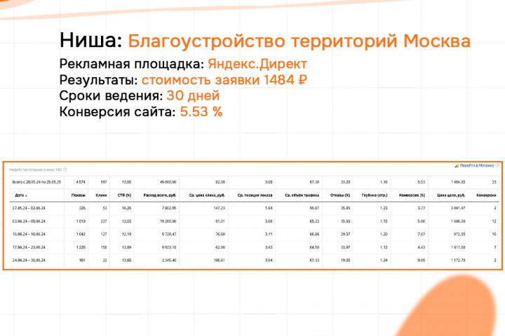КЕЙС: Благоустройство МСК - Б2Б и Б2С - Яндекс 1483 заявки конверсия сайта 5.53%
