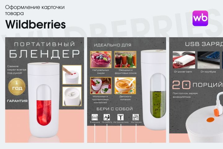 Передо мной стояла задача разработать инфографику для товара в высококонкурентной нише — портативных блендеров. Главная цель — отстроиться от аналогов, показав не столько технические характеристики, сколько сценарии использования и преимущества продукта в повседневной жизни.
