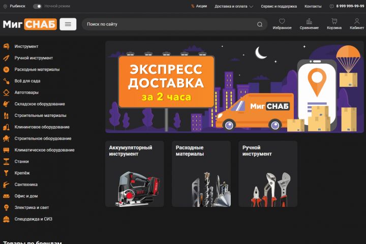 На сайте были реализованы: современный адаптив и кроссбраузерность, корзина, оформление заказа, личный кабинет, темная и светлая тема и многое другое.