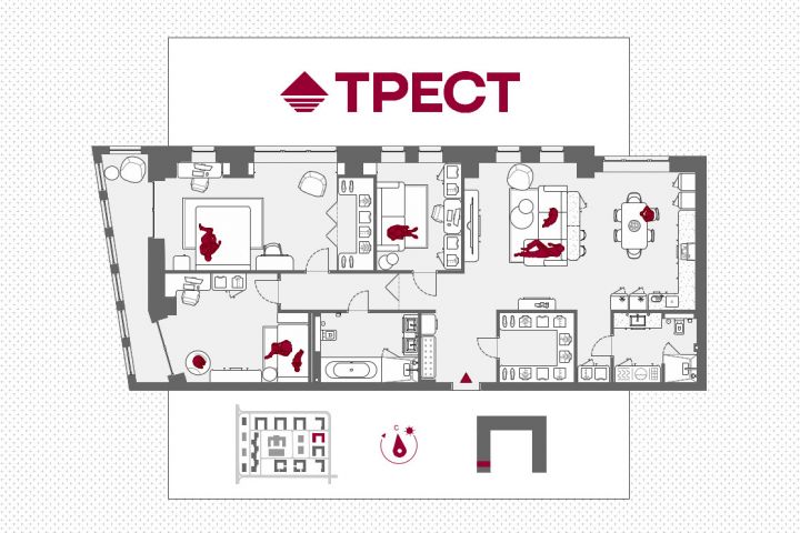 Вариант с высокой детализацией планов квартир для застройщика ТРЕСТ на примере квартиры в ЖК "NEW Питер"