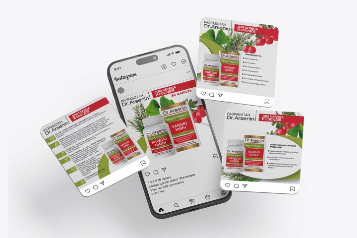 Дизайн упаковок и этикеток линейки БАД и постов для соцсетей