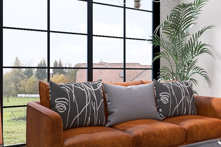 Была задача сделать интерьер для девушки в стиле современный лофт с натуральными материалами и природными оттенками. Диван из мягкой замши терракотового цвета. На фото вы можете видеть разные варианты расстановки мебели и декора.