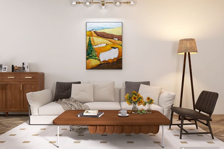 Была задача сделать классический современный интерьер с нотками ретро. Мебель из дерева темного коричневого оттенка. Яркий декор для контраста.