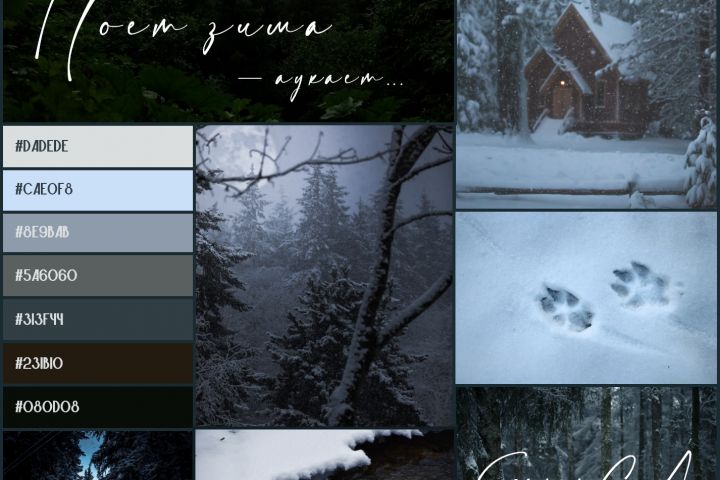 Создание концепт-борда на тему стихотворений С.А. Есенина "Поет зима - аукает" для задания из университета.