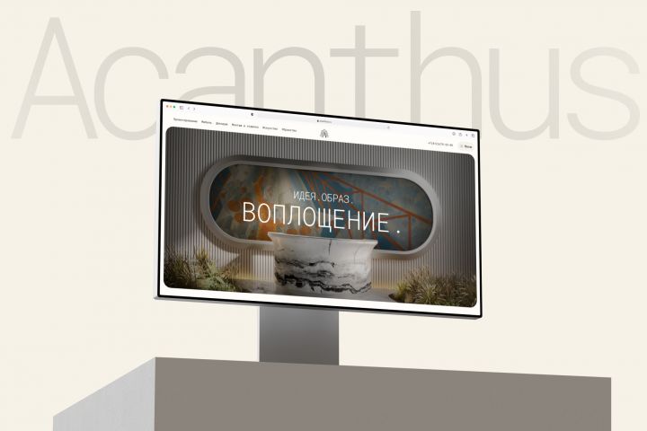Перед нами стояла интересная задача: передать масштабность и уникальность продуктов компании с помощью простых форм и минимализима. На выходе получился имиджевый сайт, который погружает пользователя в историю деятельности Акантус Ателье.