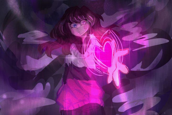 Я поставила себе цель: передать атмосферу всей своей работы и что оно из себя может представлять. Поставила в центре композиции одну из героинь, держащая в руке свою собственную душу - надежду, что освещал фон и окружение всего вокруг.