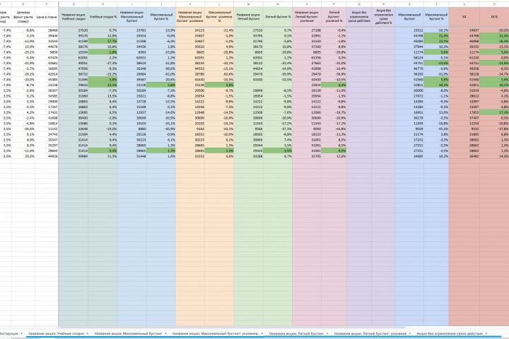 4. Грубо говоря ВПРит артикулы и наименования в каждой акции, в какую цену пропускает. При этом учитывая специфичность акции "Эластичный бустинг". Для этой акции создается 4 столбца с ценой для каждого уровня бустинга.