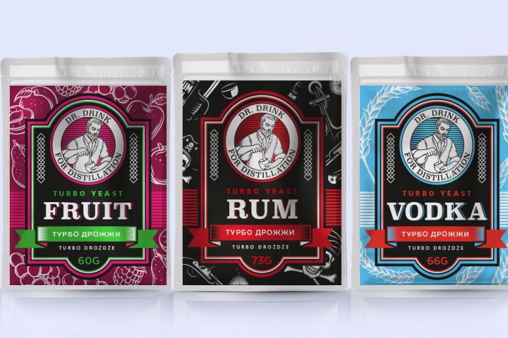 Разработка логотипа и дизайна упаковки для алкодрожжей "Dr. Drink"