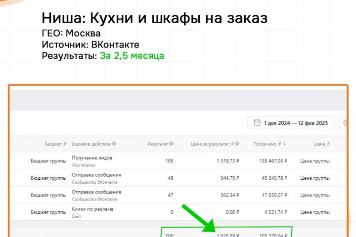 КЕЙС: Кухни и шкафы на заказ 200 заявок по 1024 руб