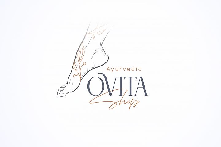 Логотип "OVITA" был разработан с учетом традиций аюрведы, где особое внимание уделяется природным элементам и их влиянию на человека. В основе дизайна лежит изображение стопы, что символизирует связь человека с землей и природой. Стопа — это символ устойчивости и равновесия, что является ключевым принципом аюрведы.