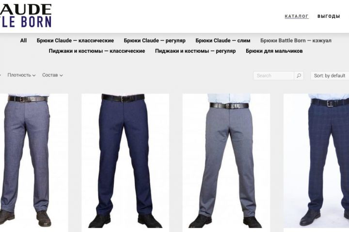 Интернет-магазин. 150 карточек товаров с подробным описанием и полями: брендов, видов ткани, плотности, артикул, характеристики. Каталог с удобным поиском и категориями, корзиной, лид-формой, различными видами связи.