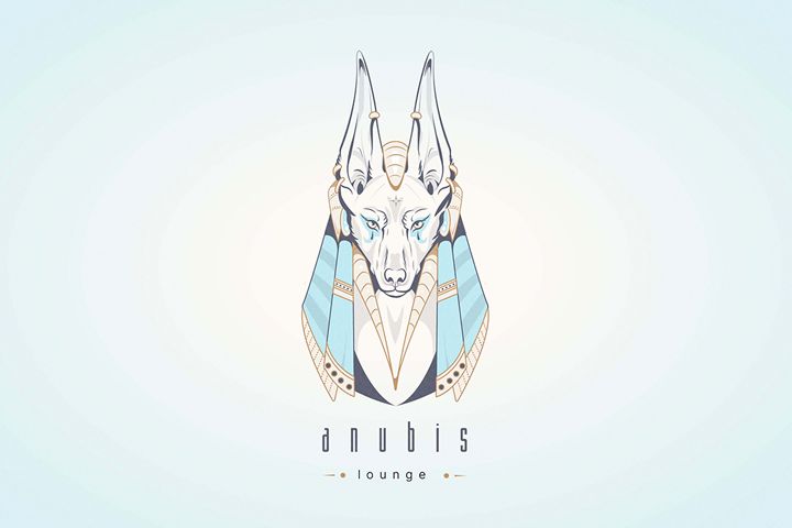 Логотип ANUBIS Lounge выполнен в стиле, который сочетает в себе элементы египетской иконографии и современные графические решения. Изображение головы Анубиса, выполненное в мягких пастельных тонах, создает ощущение спокойствия и гармонии. Золотые и синие акценты добавляют роскоши и подчеркивают мистическую природу символа.