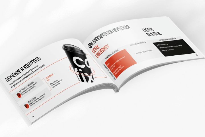 Каталог (38 стр.) для франшизы кофеен, разработан в InDesign на основе презентации.