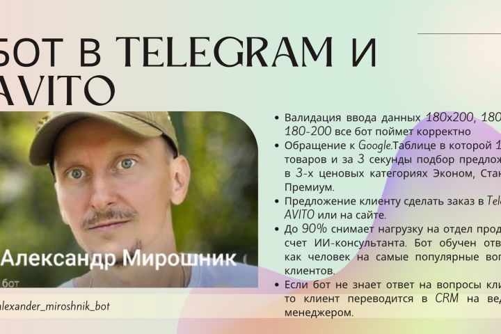 + Предложение клиенту сделать заказ в Telegram, AVITO или на сайте.
