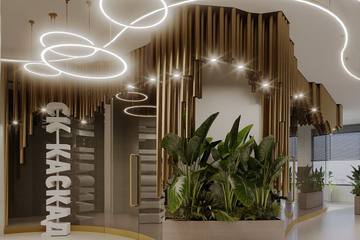 Дизайн офиса строительной компании сочетает в себе минимализм, функциональность и индустриальную эстетику, подчеркивая профессионализм и инновационный подход. Акцент делается на открытые пространства, натуральные материалы и технологичные решения.
