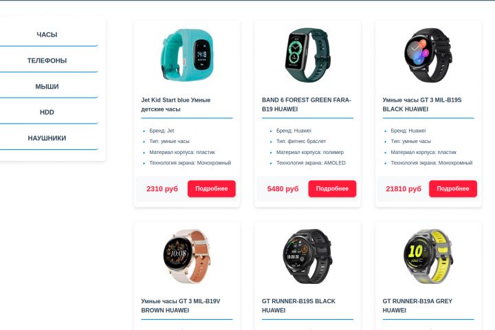 Для каждой карточки собирается название товара, артикул, цена, ссылка на карточку.