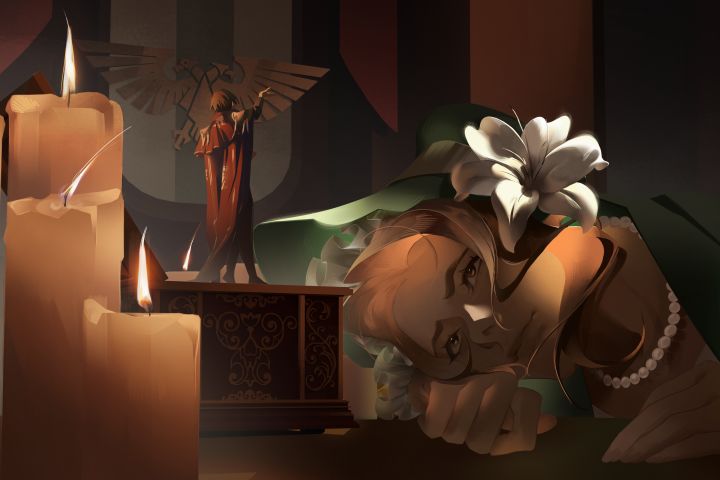 Заказчица попросила нарисовать ей персонажа из сеттинга Вархаммера. Для окружения попробовала использовать 3д, а поверх заливала рендером