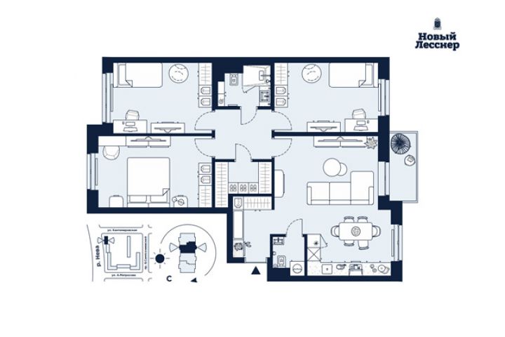 Вариант с высокой детализацией планов квартир для застройщика ОТДЕЛСТРОЙ на примере квартиры в ЖК "Новый Ленсснер"