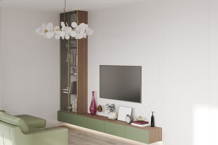 За основы взяты светлые оттенки стен и приятный натуральный оттенок пола. Ровная поверхность стен разбавлена объемными панелями, которые делают интерьер интереснее, но не выбиваются из общей картины.