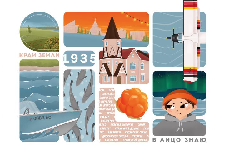 Получился яркий баннер в цветах и настроении города. Удалось лаконично поместить в него множество аспектов жизни горожан, а так же "пасхалки" понятные только нарьянмарцем. Северное сияние, рыбалка, главный архитектурный памятник города, очертание зданий, арктическая авиация с яркими АН-2, тундра, название домов, также дать намёк на герб города.