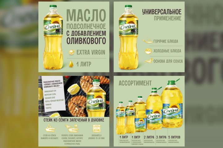 Создать карточки для Озон фреш на подсолнечное масло «олейна» с добавлением оливкового и подсолнечное масло «олейна» классика