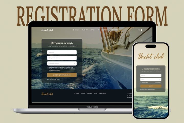 Разработка серии форм для сайта яхт-клуба: вход, регистрация и восстановление пароля.