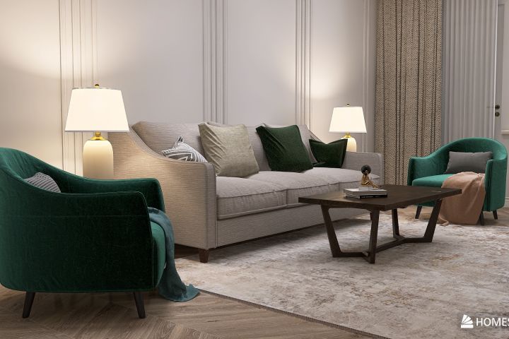Гостиная в спокойном неоклассическом стиле