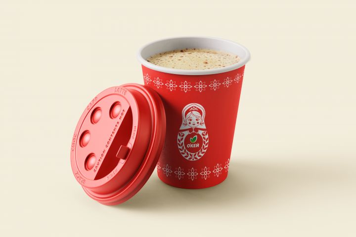 Идея дизайна стаканчика состоит в том, что необходимо было создать ключевой элемент очень близкий и понятный широкому кругу людей. Поэтому моим ключевым элементом стала матрешка, как русский символ «хозяйки дома (гипермаркета)». Матрешка всегда накормит и напоит досыта. У матрешки в хозяйстве всегда можно найти свежие продукты и много чего полезного. Тематика русского фольклора, русских узоров, сейчас очень актуальна в наше время. Сейчас в тренде подчеркивать этнические корни в современной интерпретации. Этим торговая сеть ОКЕЙ сможет подчеркнуть принадлежность к России.