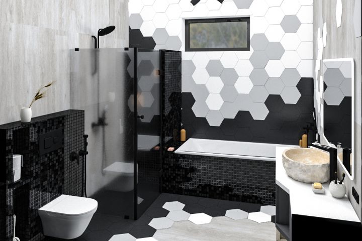 Разместить в санузле ванну, душевую, инсталяцию и раковину с местами хранения и холодильником для косметики.