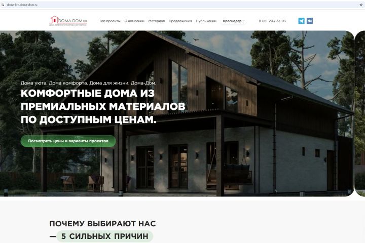 Цель проекта — создать сайт, который будет инструментом продаж: демонстрировать проекты домов, показывать примеры работ, давать возможность оставить заявку на консультацию или расчёт стоимости. Важно было учесть особенности целевой аудитории — молодых семей, ИТ-специалистов и людей, желающих построить дом без ипотеки, для которых важно сочетание цены, качества и надёжности.