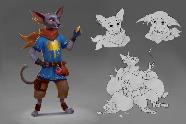 Концепт-арт персонажа кота воришки. Время выполнения 15 часов, 2025г.