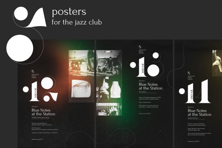 Создать серию постеров для пятидневного джаз-фестиваля в клубе Police Station, с упором на единый визуальный стиль и выразительную типографику.