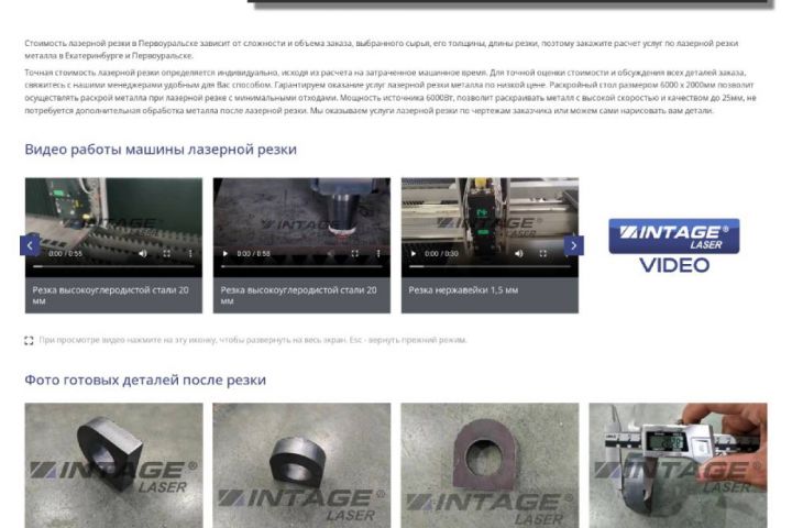 Этот лендинг изготовлен для компании, занимающейся лазерной резкой, очисткой и сваркой металла. На сайте много собственных фотографий, видеороликов, что отличает их от многих других, выкладывающих множество стоковых картинок. Все фото натуральные. Есть также уникальные описательные тексты для потенциальных клиентов и для SEO продвижения.