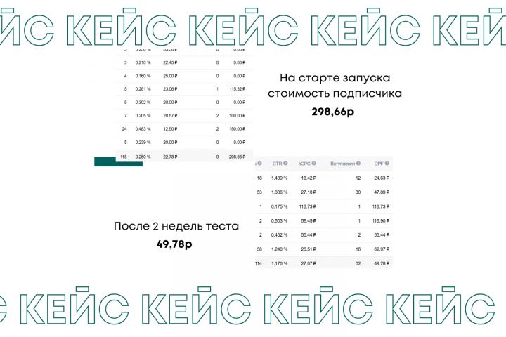 Была проведена большая работа по анализу аудитории, составлено несколько вариантов текстов, креативов, проработаны базы через кабинет и через парсер, на первых тестах результат - 298,66р вообще не вписывалось в KPI