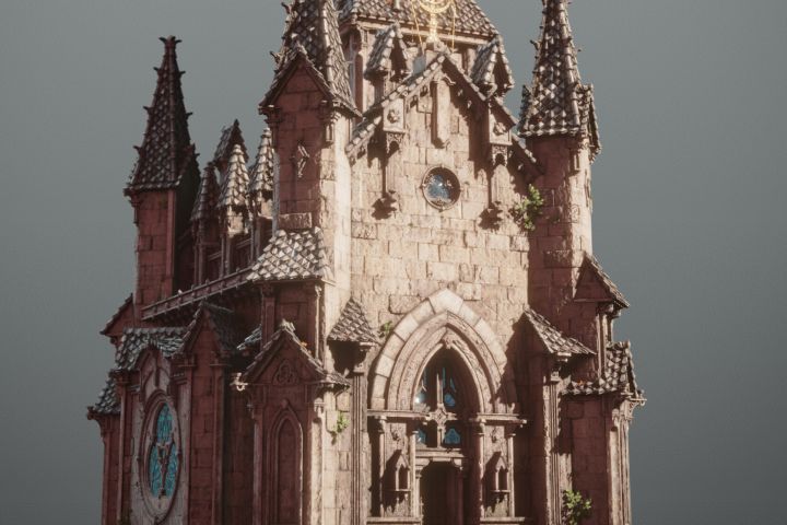 В этой работе решалась как чисто творческие задачи - придумать как часовня будет выглядеть, определить и создать все необходимые элементы, так и технические - сделать завершённую модель с текстурами для использования в игровом движке.