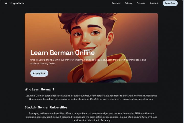 Целью проекта было создание современного, визуально привлекательного и интуитивного лендинга для англоязычного сайта онлайн-школы, обучающей немецкому языку. Главный фокус — повышение конверсии и доверия к бренду на международной аудитории.