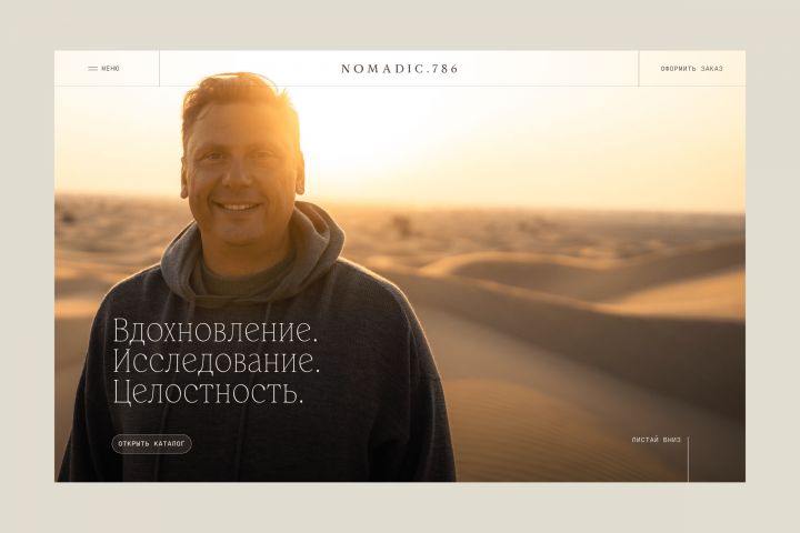 В качестве основного шрифта для nomadic.786 — выбрал шрифт без засечек, который будет легко читаться на различных устройствах. Для заголовков взял рукописный шрифт, чтобы подчёркивать простоту и элегантность дизайна.