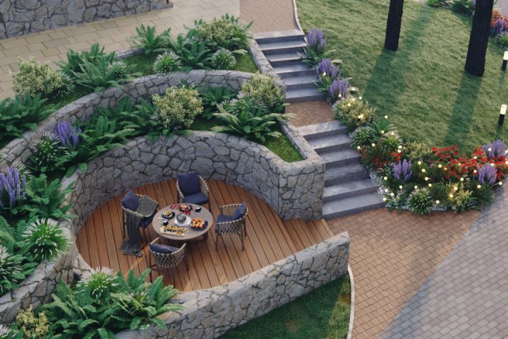 В рамках проекта ландшафтного дизайна территории ИЖД выполнено: