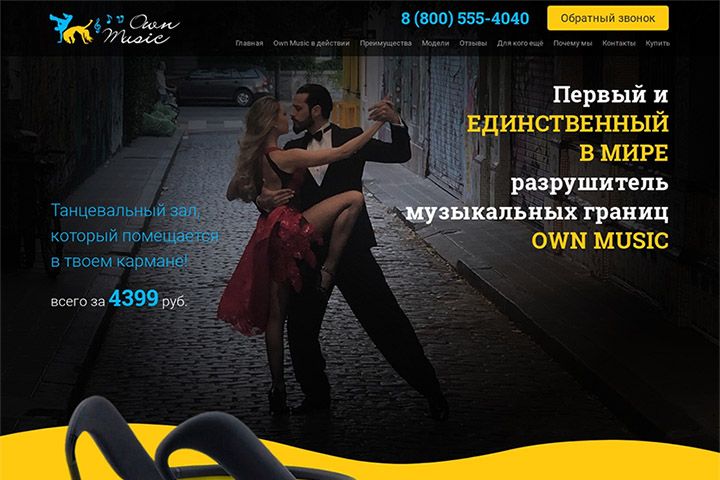 Выполнена вёрстка сайта, продающего наушники для танцев. Полный скриншот смотри во вложении. Дизайн - https://freelance.ru/ma_rgo