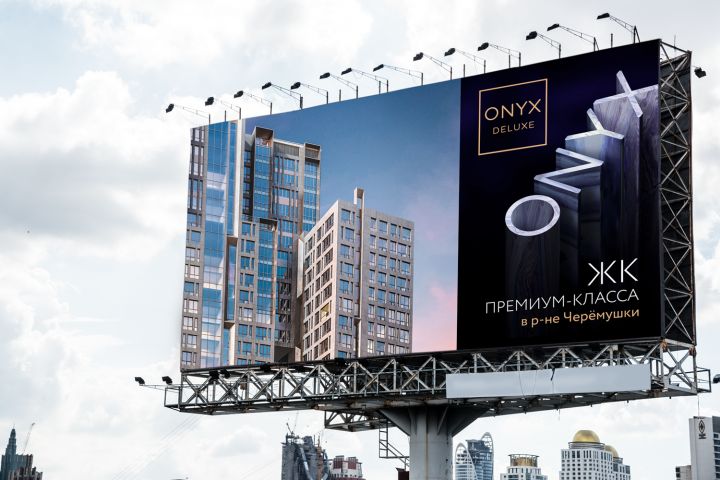 Изысканная декоративная отделка стен из природного камня оникса с его цветными переливами, повторяющими узоры древесины, нашли отражение в рекламной кампании московского жилого комплекса премиум класса.