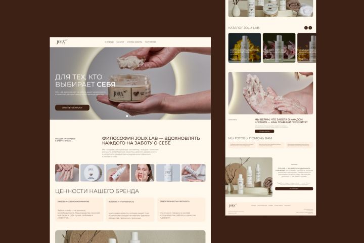 Целью проекта было создать визуально приятный, тёплый и вдохновляющий сайт, который транслирует философию бренда “уход за собой — это проявление любви, уверенности и силы”. Основной задачей было передать эстетику осознанного отношения к себе через натуральную продукцию.