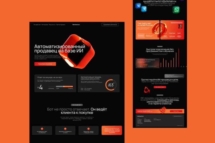 Целью было разработать одностраничный сайт, который демонстрирует работу интеллектуального помощника-продавца. Основная задача — показать, как ИИ способен консультировать пользователя в режиме реального времени, подбирая продукт под его запрос и доводя до покупки.