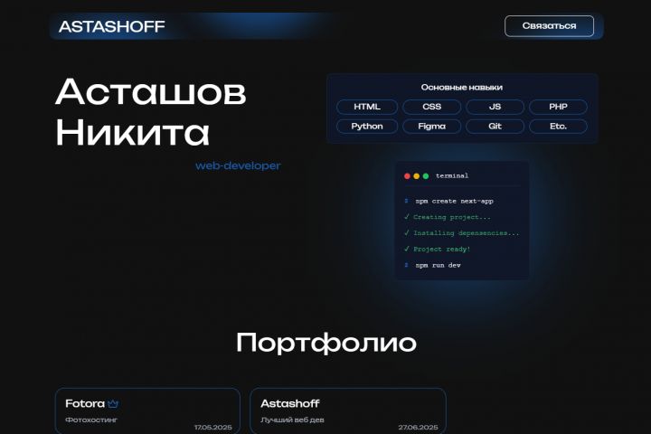 Сайт посвящённый разработчику, написанный этим разработчиком.