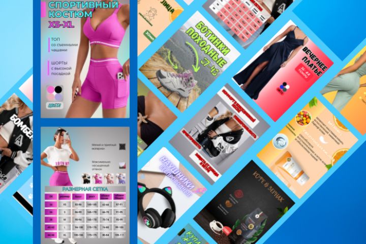 Оформление сочетает динамичную подачу и структуру, подходящую для маркетплейсов.