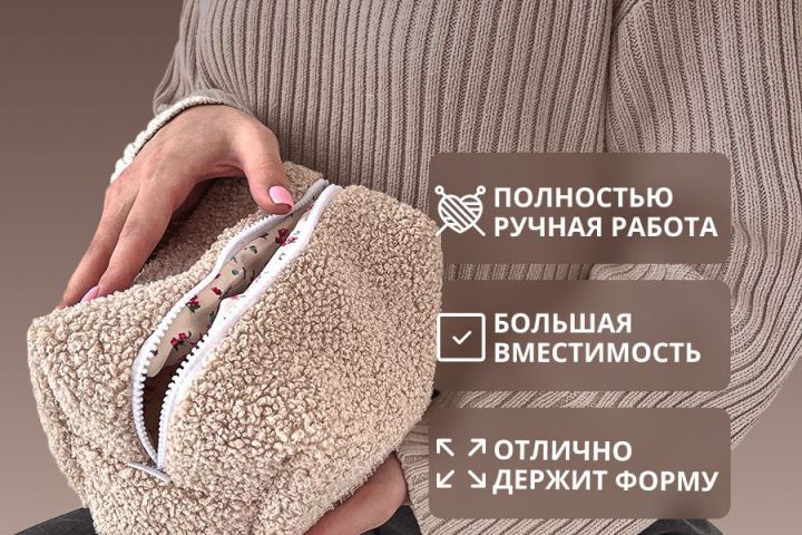Карточка для WB и ОЗОН плюшевая косметичка