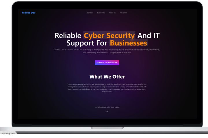 Создан одностраничный лендинг для IT-компании, специализирующейся на кибербезопасности и IT-поддержке бизнеса. Основная задача — представить услуги компании в современном и стильном дизайне с акцентом на надежность и профессионализм.