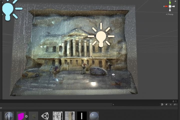 Из присланных сканов картин разных авторов создавались с помощью мэппинга 3d модели содержимого.Какие то элементы анимировались.