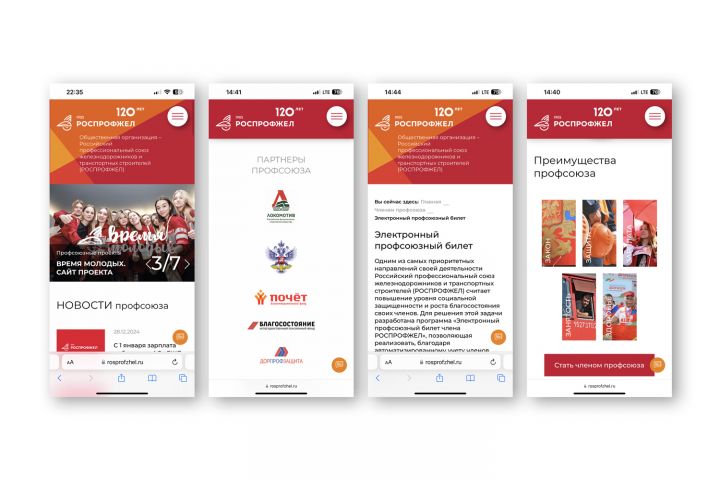 Роспрофжел Российский профессиональный союз железнодорожников и транспортных строителей. Дизайн корпоративного сайта всех разделов и форм.